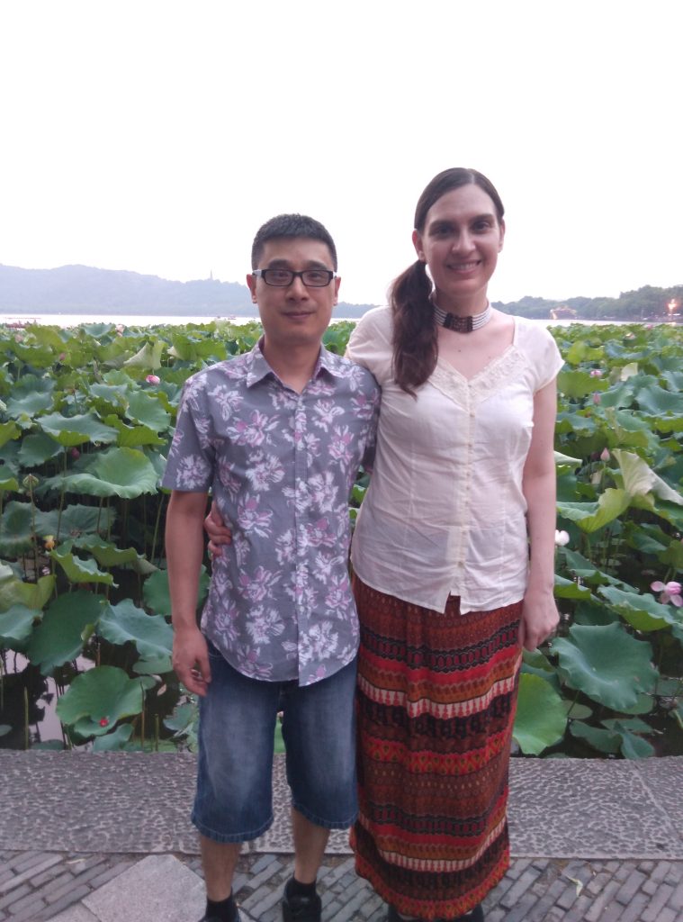Celebrating our anniversary beside the West Lake in Hangzhou.