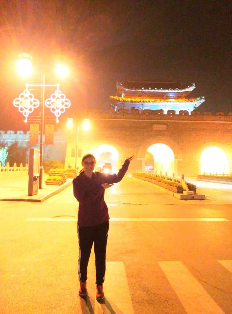 Admiring the city wall all lit up in Qufu, Shandong province.