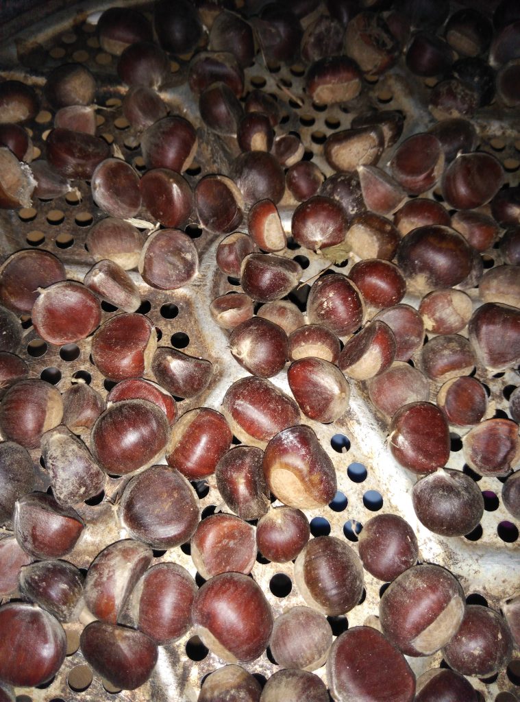 Here the hillsides become a land of plenty as the chestnut trees shower their delicious fruit everywhere. People like my mother-in-law scour the natural areas for chestnuts, and then take them home to roast. There’s nothing quite like the aroma of roasted chestnuts, especially on a chilly fall evening. I also love the subtle flavor reminiscent of sweet potatoes, and the fact that they can be a terrific after-dinner snack. Open fire optional. 😉