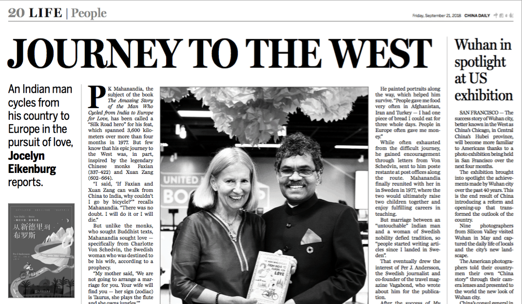 China Daily just published my feature story, titled Journey to the West, about PK Mahanandia and his extraordinary journey from India to Sweden by bicycle for love (which I blogged about earlier this year). Here’s an excerpt from the piece: