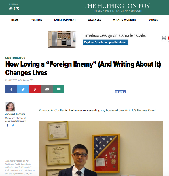 Ron Coulter, my husband’s lawyer, reminded me of the value that comes from writing about what it’s like to live with – and even sleep with – the so-called “enemy” country.