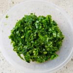Finely chop all the cilantro — for dough and sauce — then set aside in a bowl.