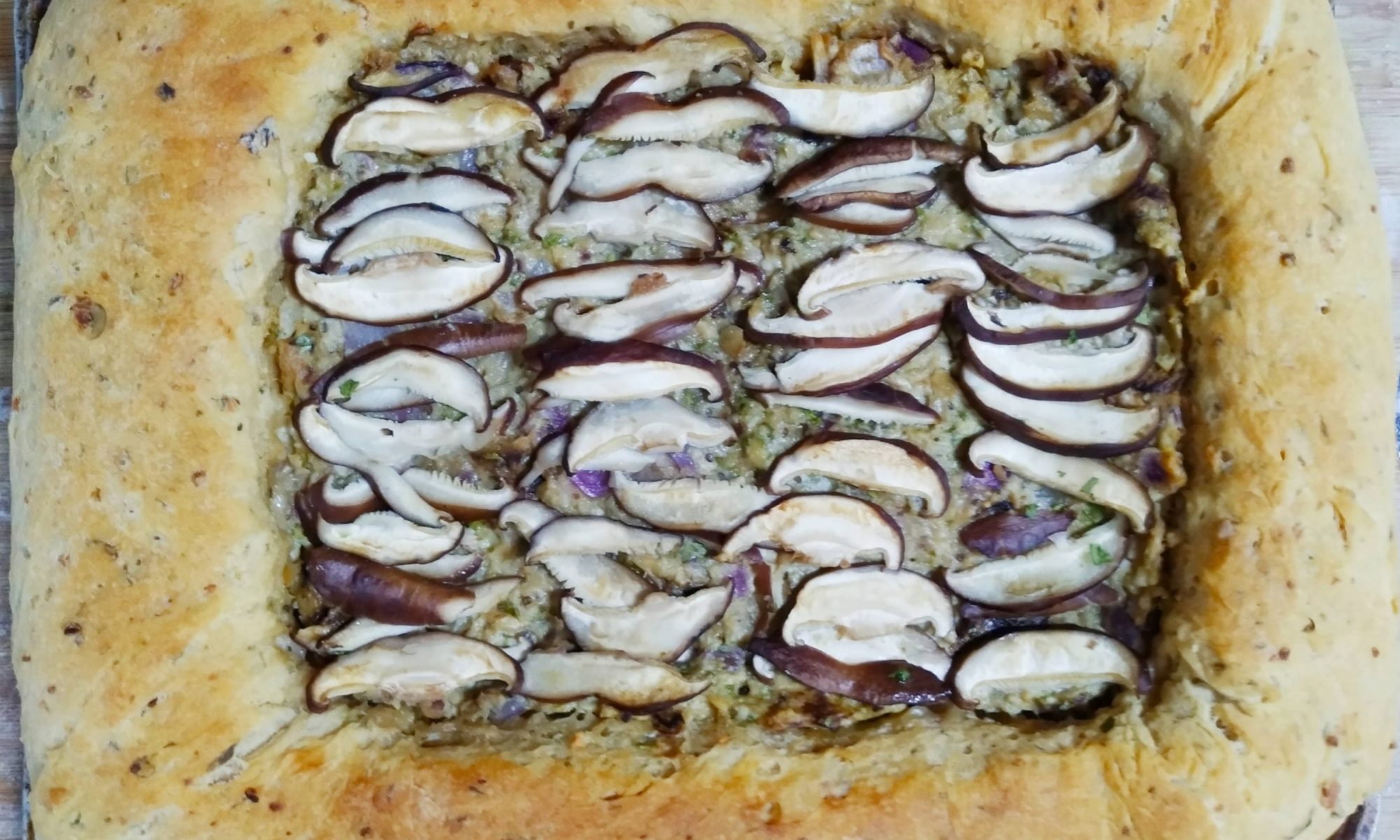 Vegan Cilantro Pizza w/ Shiitake Mushrooms and Savory Eggplant Sauce