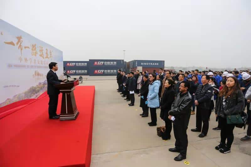 We first arrived at the Xinzhu station in Xi’an, a major inland port for China-Europe trains, and gathered for an opening ceremony, which took place right beside one of the trains set to travel to Hamburg, Germany. I’m standing in the front row before the stage, wearing a powder blue down jacket.