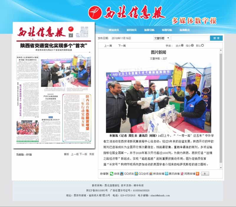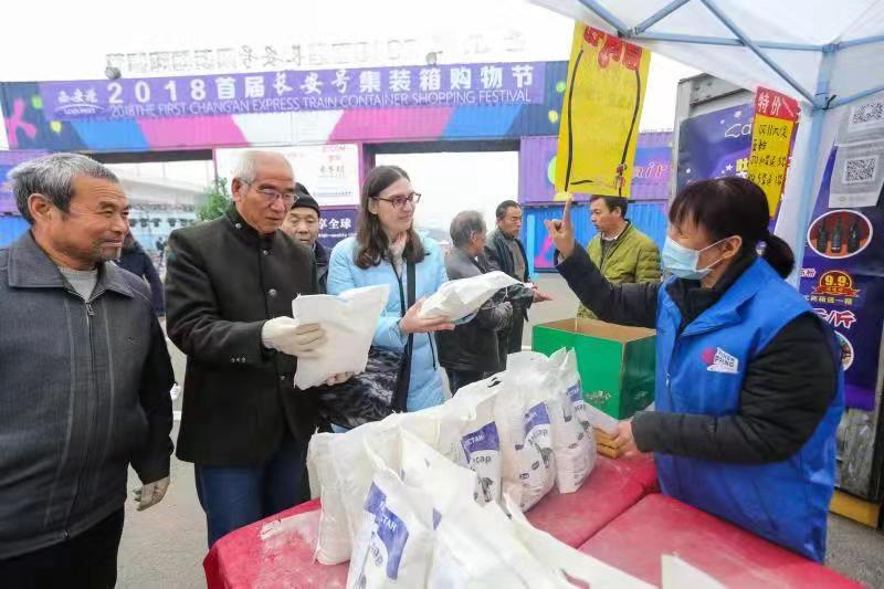 Next door, a “shopping festival” featured a number of goods shipped on the China-Europe trains, including this flour made from wheat grown in Kazakhstan.